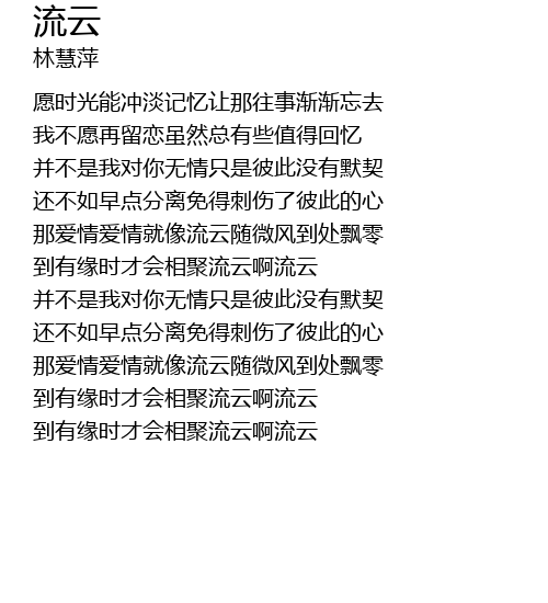 | [01:15.79] | 到有缘时才会相聚流云啊流云 |