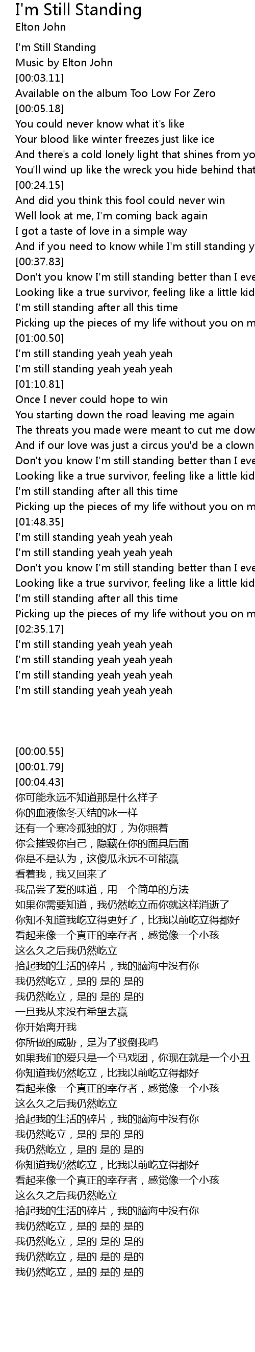 I'm still standing yeah yeah yeah |