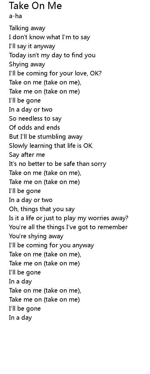 Take on me (take on me), |