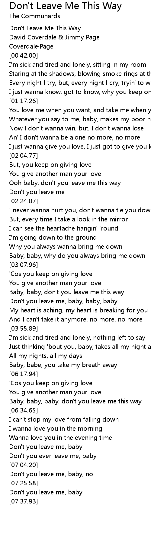 | [02:14.42] | Ooh baby, don't you leave me this way |