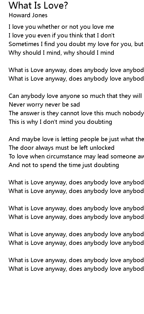 What is Love anyway, does anybody love anybody anyway |