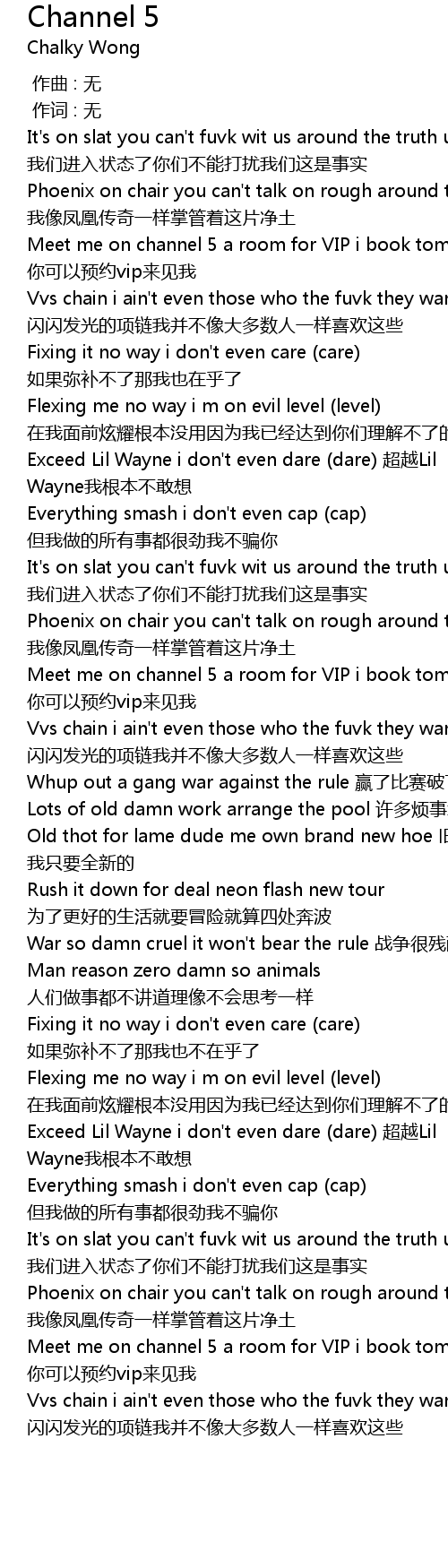 | [00:09.742] | Vvs chain i ain' t even those who the fuvk they wants one shǎn shǎn fā guāng de xiàng liàn wǒ bìng bù xiàng dà duō shù rén yí yàng xǐ huān zhèi xiē |