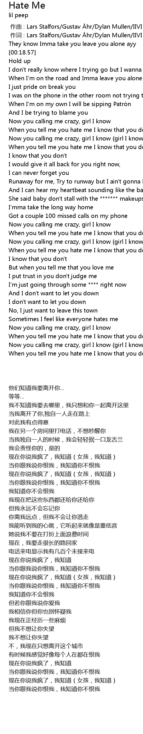 | [00:55.89] | When you tell me you hate me I know that you don't |