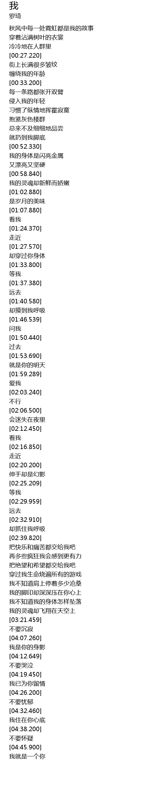 | [04:20.950] | wǒ yǐ wèi nǐ liú qíng |