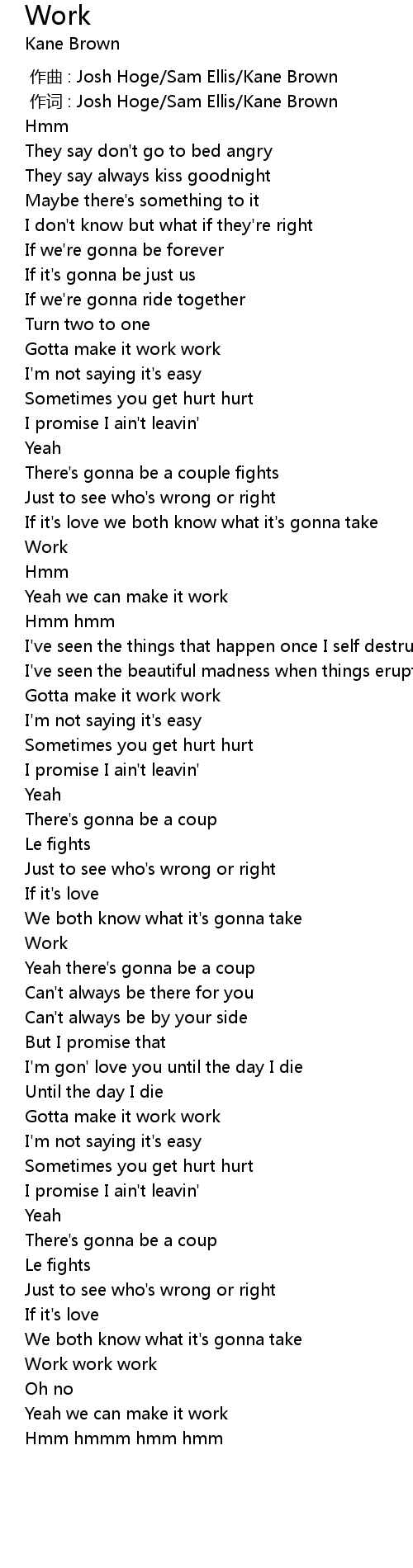 | [00:01.000] | zuo ci : Josh Hoge Sam Ellis Kane Brown |