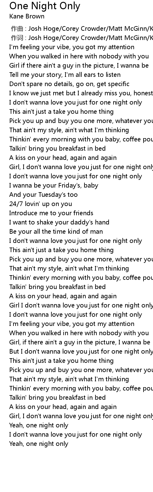 | [01:01.113] | Girl, I don' t wanna love you just for one night only |