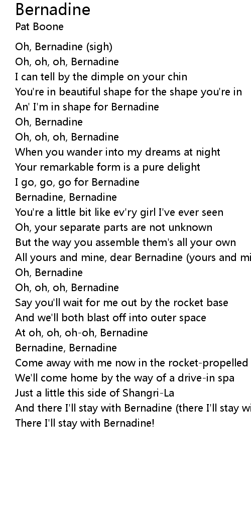 All yours and mine, dear Bernadine (yours and mine, dear Bernadine) |