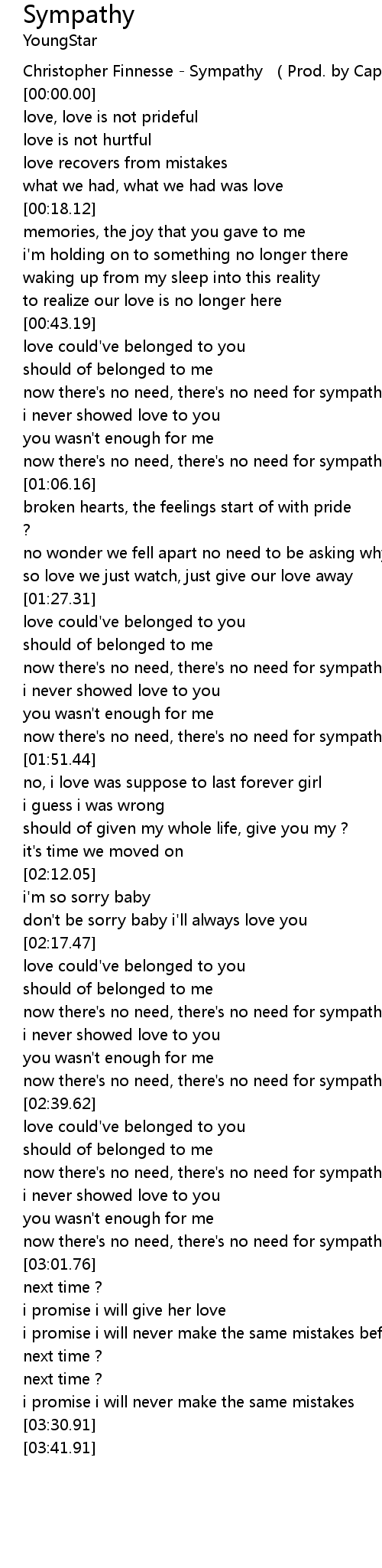| [02:56.52] | now there's no need, there's no need for sympathy |
