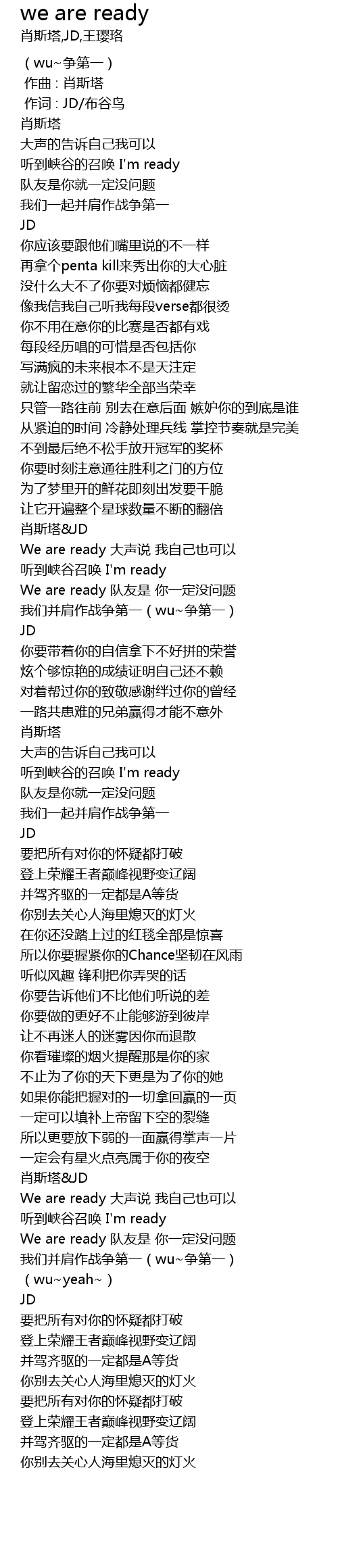 | [02:53.723] | 听到峡谷召唤 I'm ready |