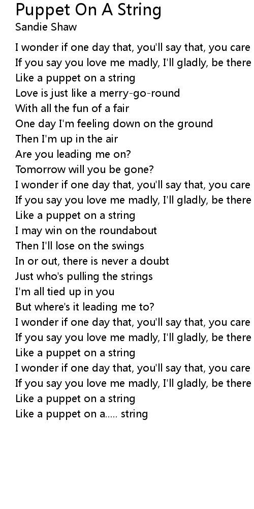 Like a puppet on a..... string |