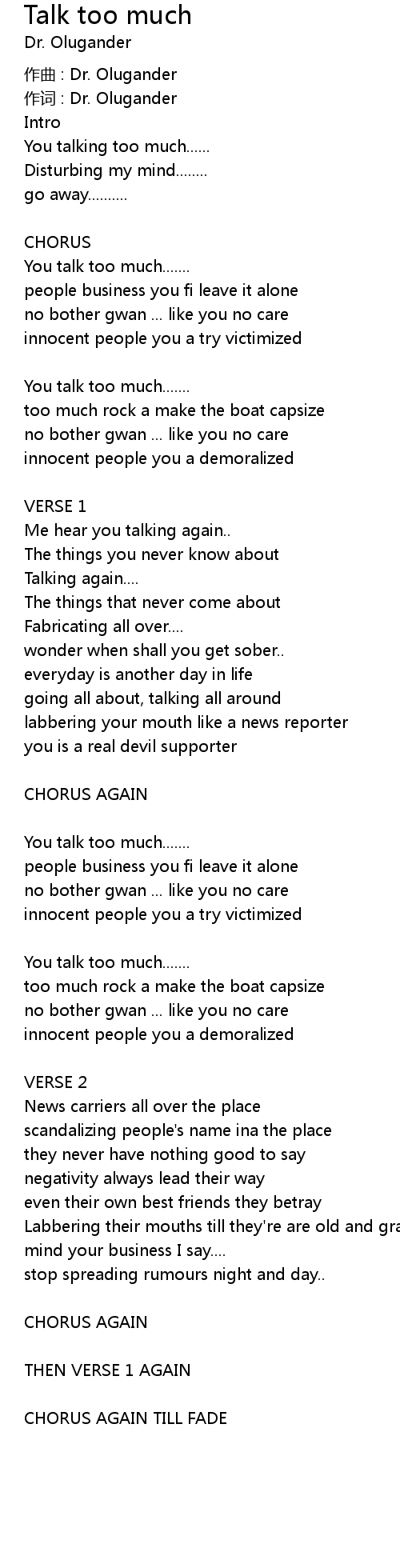 | 作词 : Dr. Olugander | |