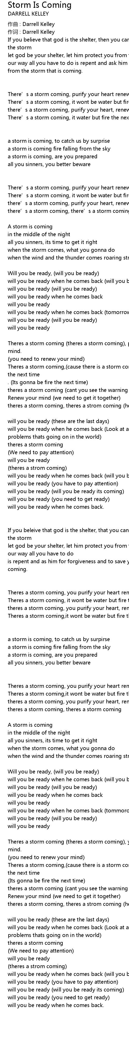 | Theres a storm coming theres a storm coming, you purify your heart renew your mind. | |