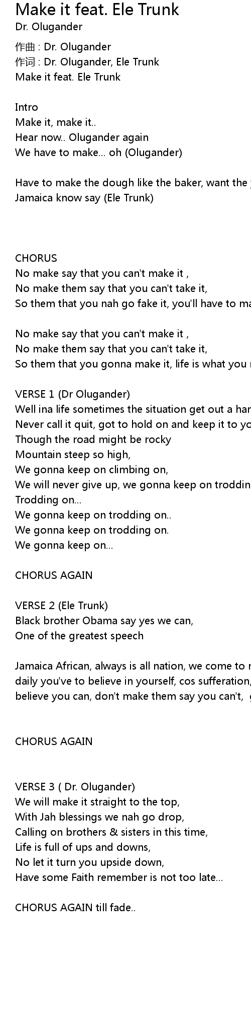 | Have to make the dough like the baker, want the youth them from Africa to Jamaica know say Ele Trunk | |