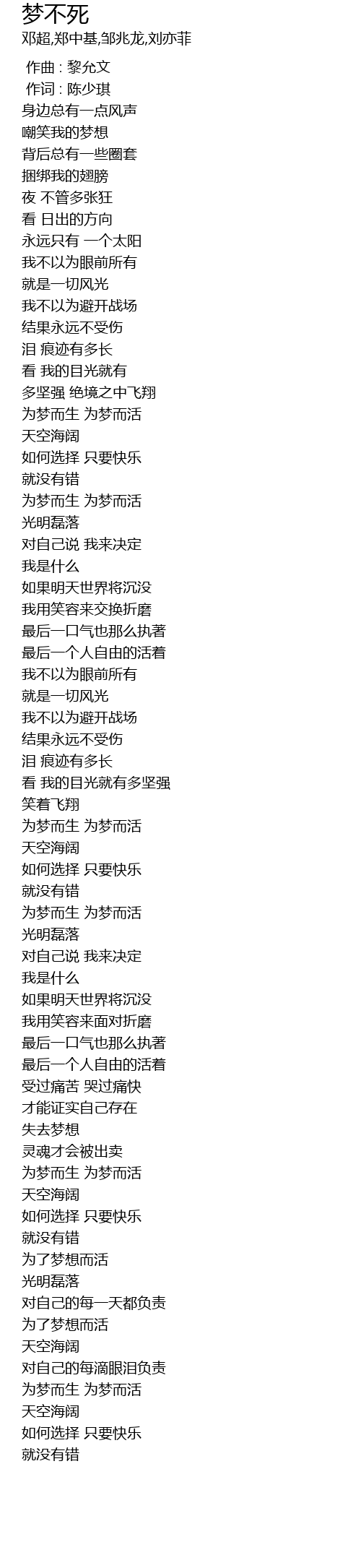 | [02:40.810] | 为梦而生 为梦而活 |