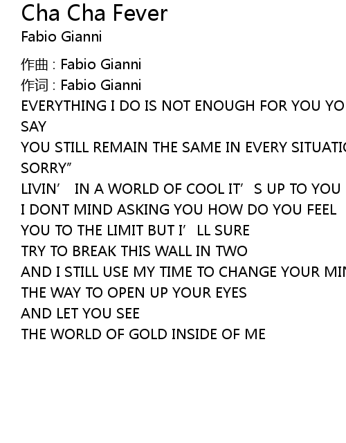| Song | Cha Cha Fever |