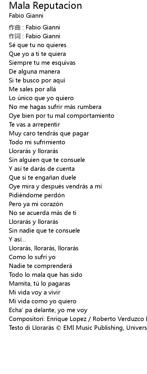 | Testo di Llorarás © EMI Music Publishing, Universal Music Publishing Group |