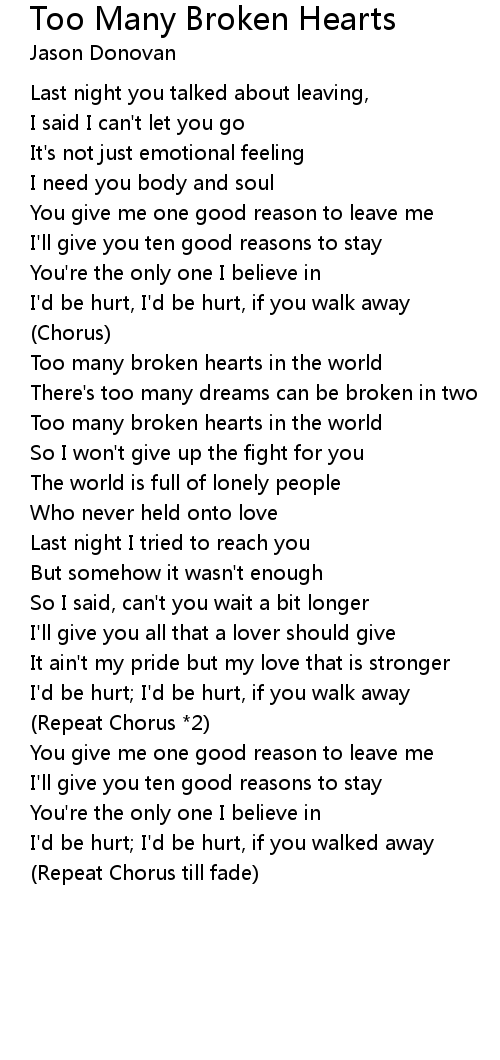 Too many broken hearts in the world |