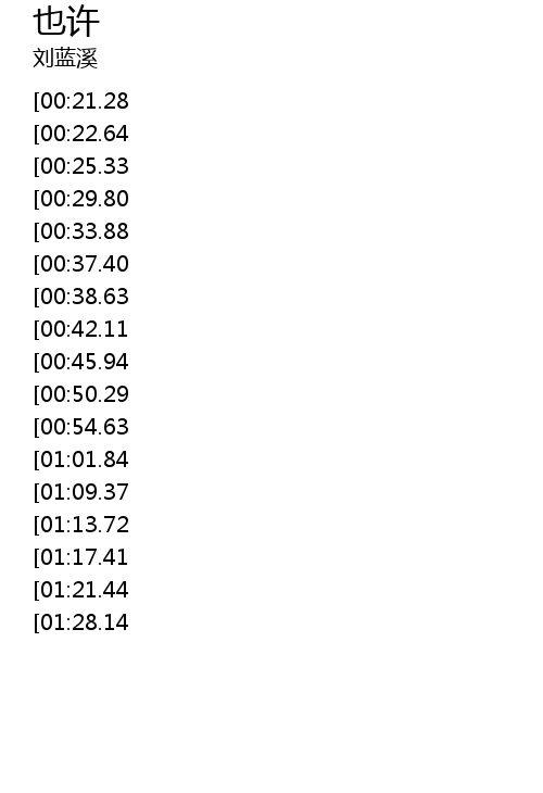 | [01:38.80][00:21.28] | 也许 |