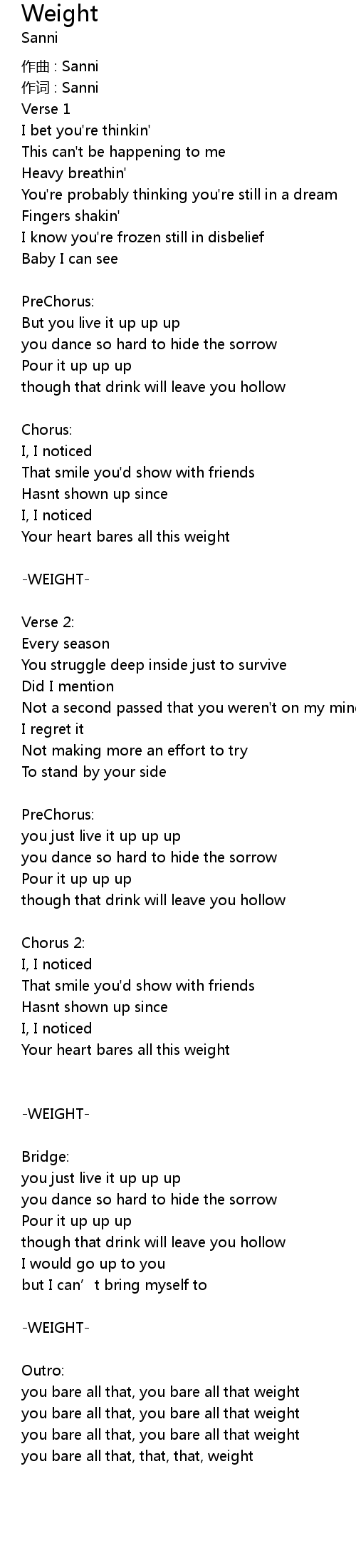 | Your heart bares all this weight | |