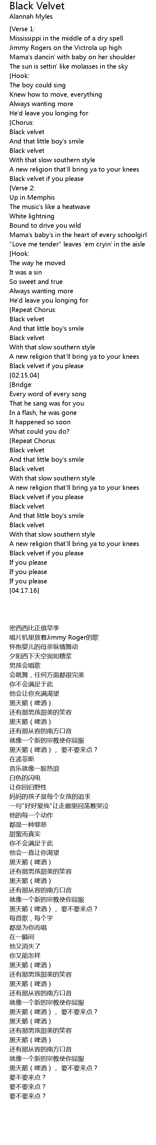 [03:15.84] Black velvet if you please