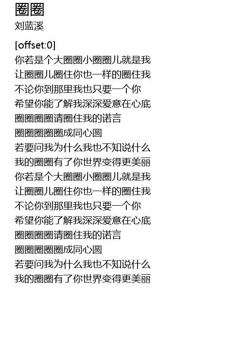 | [00:56.06] | 圈圈圈圈请圈住我的诺言 |