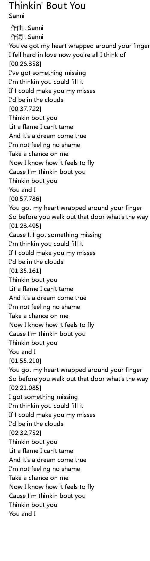 | [00:09.985] | You' ve got my heart wrapped around your finger |