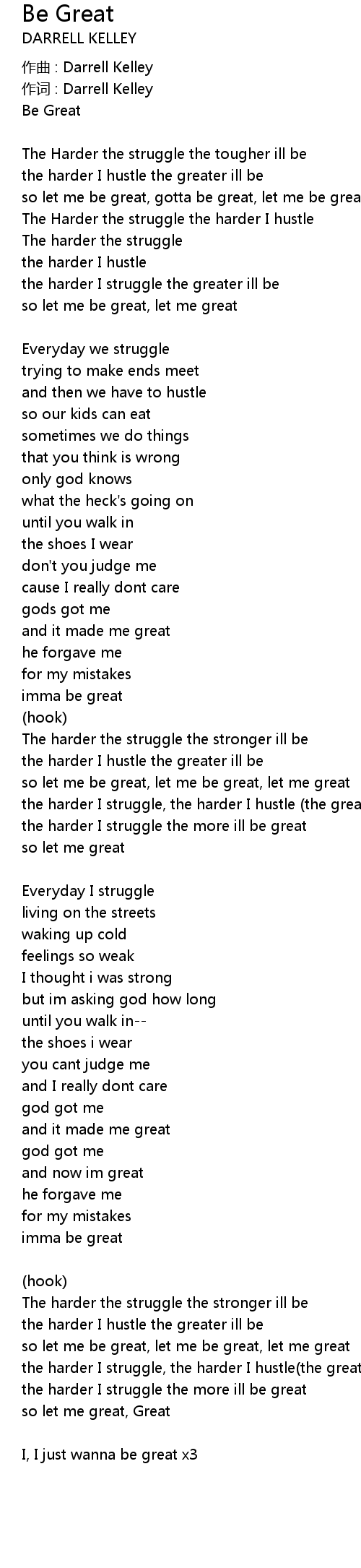 | the harder I struggle, the harder I hustle the greater ill be | |