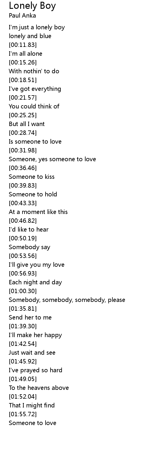 | [00:07.34] | I'm just a lonely boy |