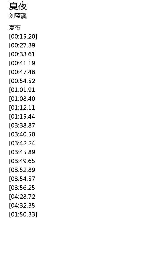 | [04:08.00][03:38.87][03:09.76][01:22.12] | xia tian de wan shang |