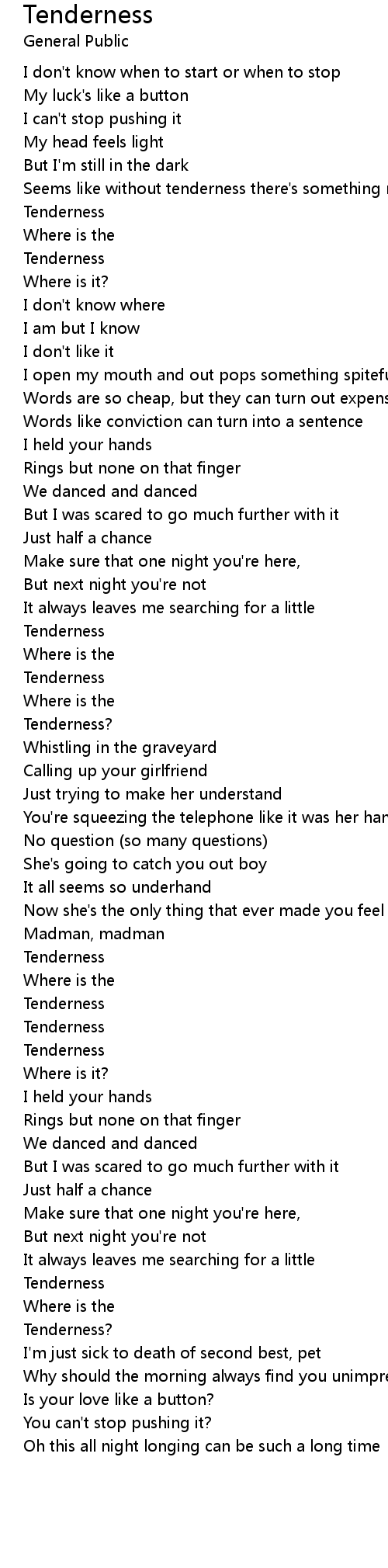 Tenderness Lyrics