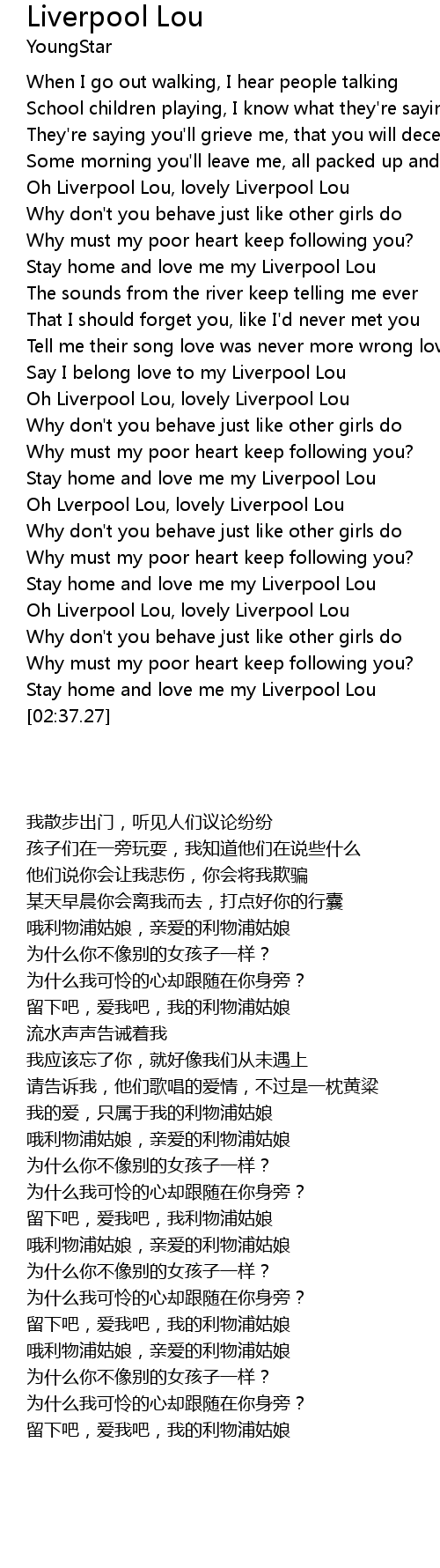 Say I belong love to my Liverpool Lou |