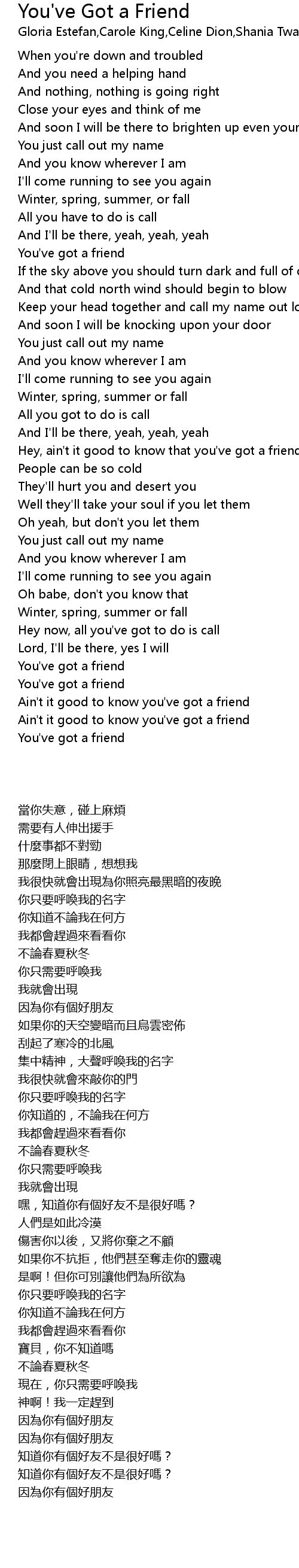 Ain't it good to know you've got a friend |