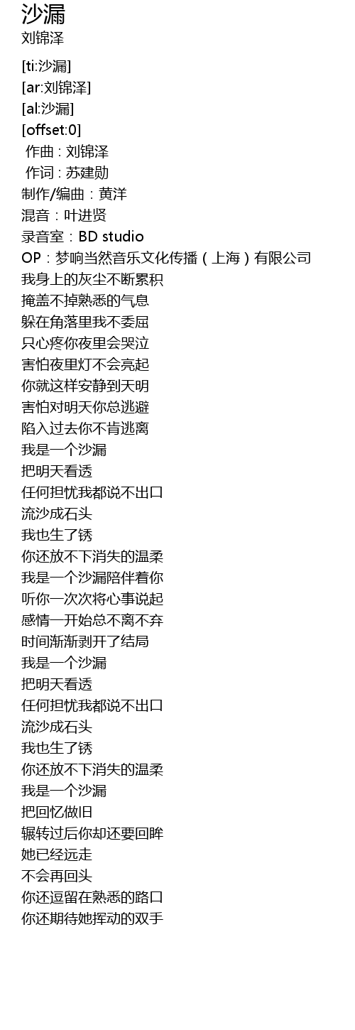 | [00:00.000] | 作曲 : 刘锦泽 |