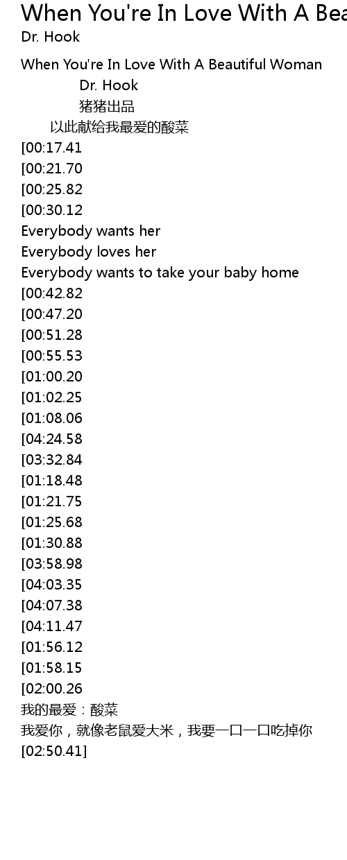 | [03:03.41][00:17.41] | When you' re in love with a beautiful woman |
