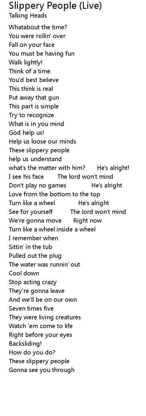 | Song | Slippery People (Live) |