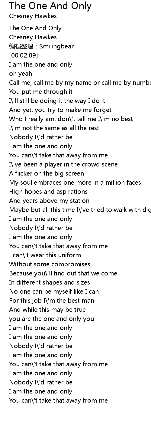 | [01:49.79] | I am the one and only |