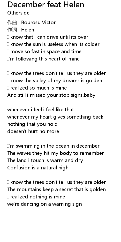 | Song | December feat Helen |