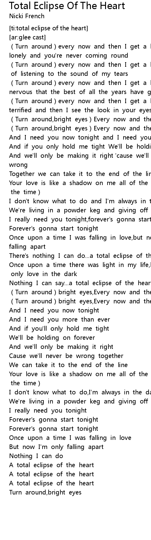 | [01:43.03] | There's nothing I can do...a total eclipse of the heart |