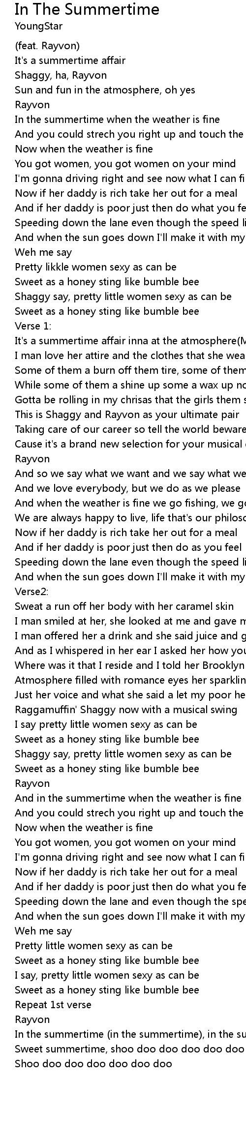 Sweet summertime, shoo doo doo doo doo doo doo doo doo doo |
