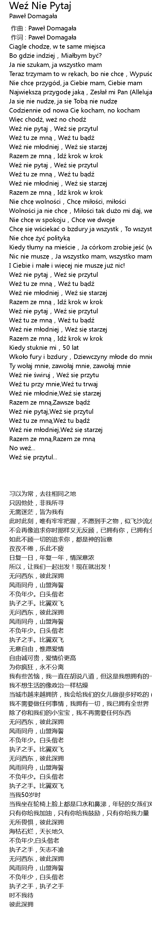 | [03:38.71] | Weź tu ze mną,Weź tu bądź |