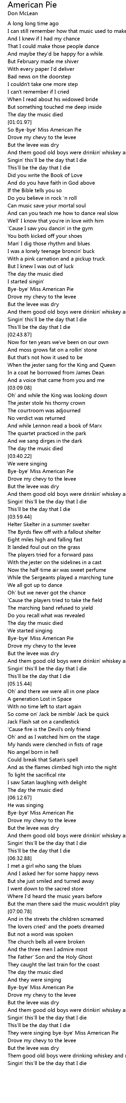 So Bye-bye' Miss American Pie |