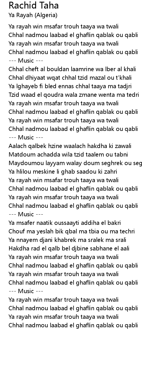 Ya lghayeb fi bled ennas chhal taaya ma tadjri |