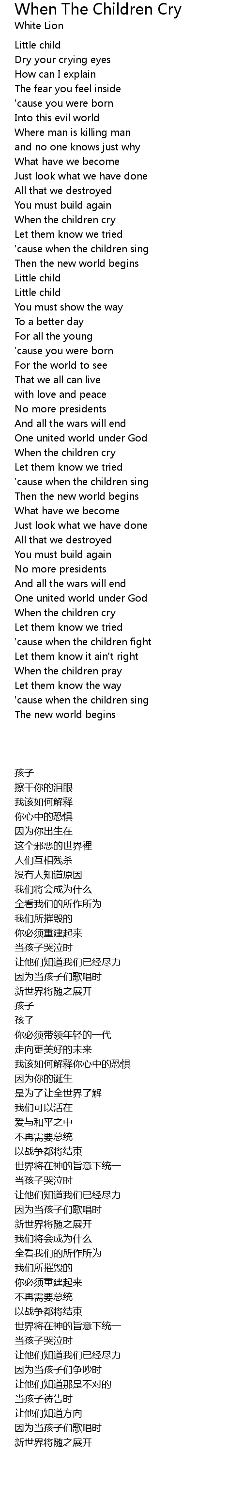 | Song | When The Children Cry |