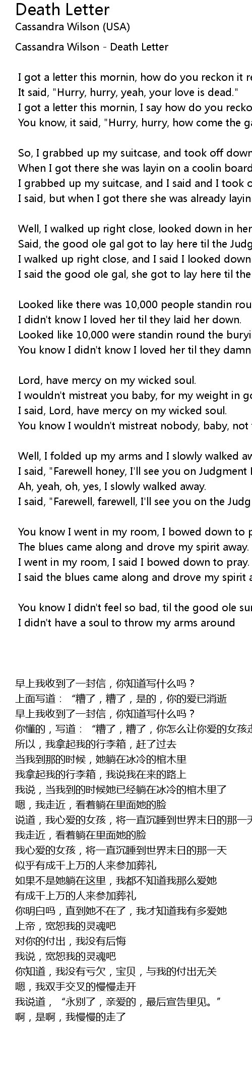 It said, "Hurry, hurry, yeah, your love is dead." |