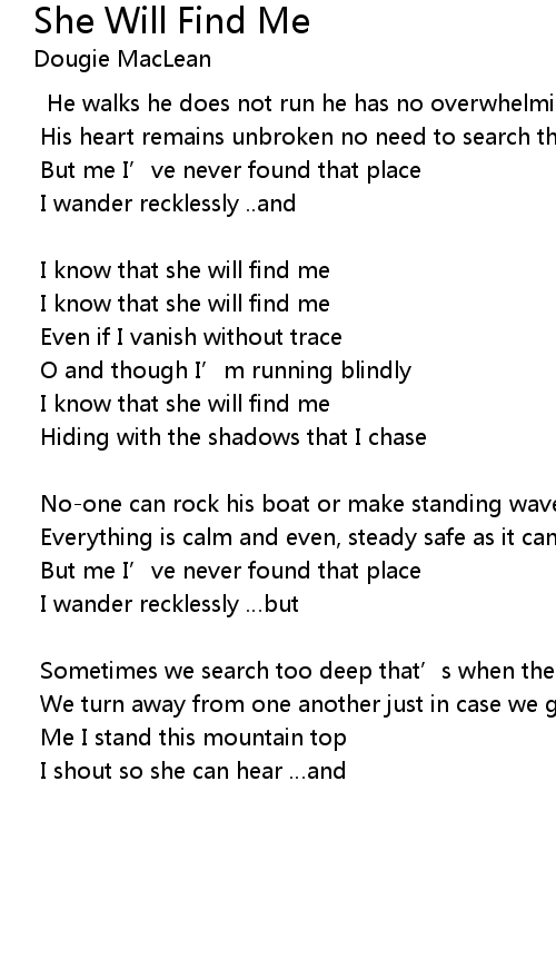 | I know that she will find me | |