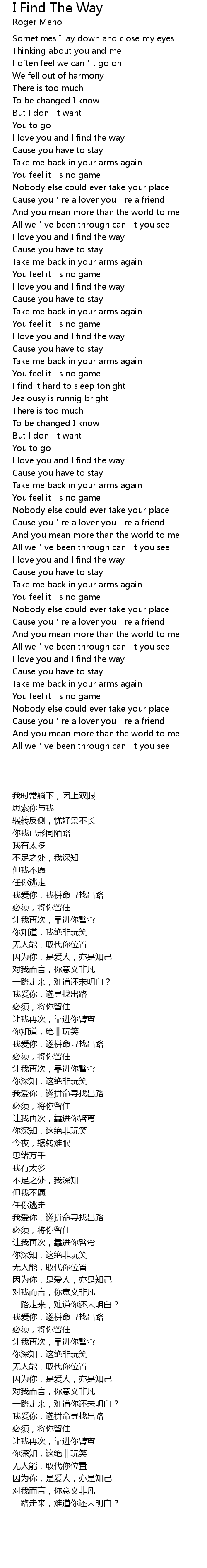 | [03:42.96] | I love you and I find the way |