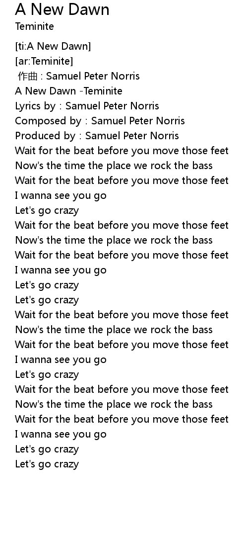 | [00:17.545] | Lyrics by: Samuel Peter Norris |