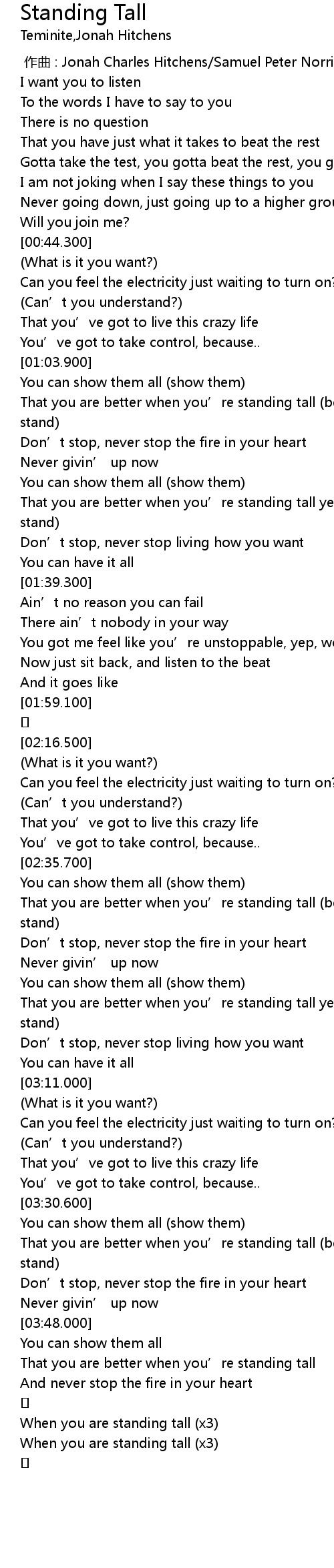 | [02:57.700] | That you are better when you' re standing tall yeah better when you stand |