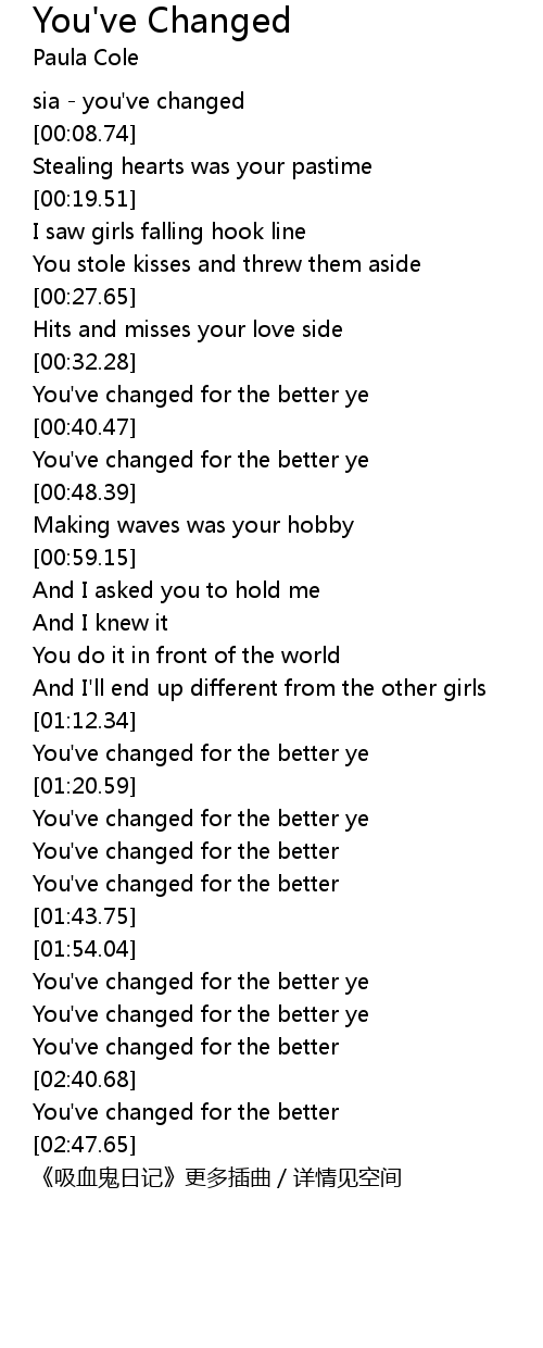 | [02:41.25] | You' ve changed for the better |
