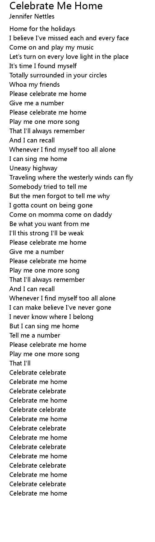 Please celebrate me home |